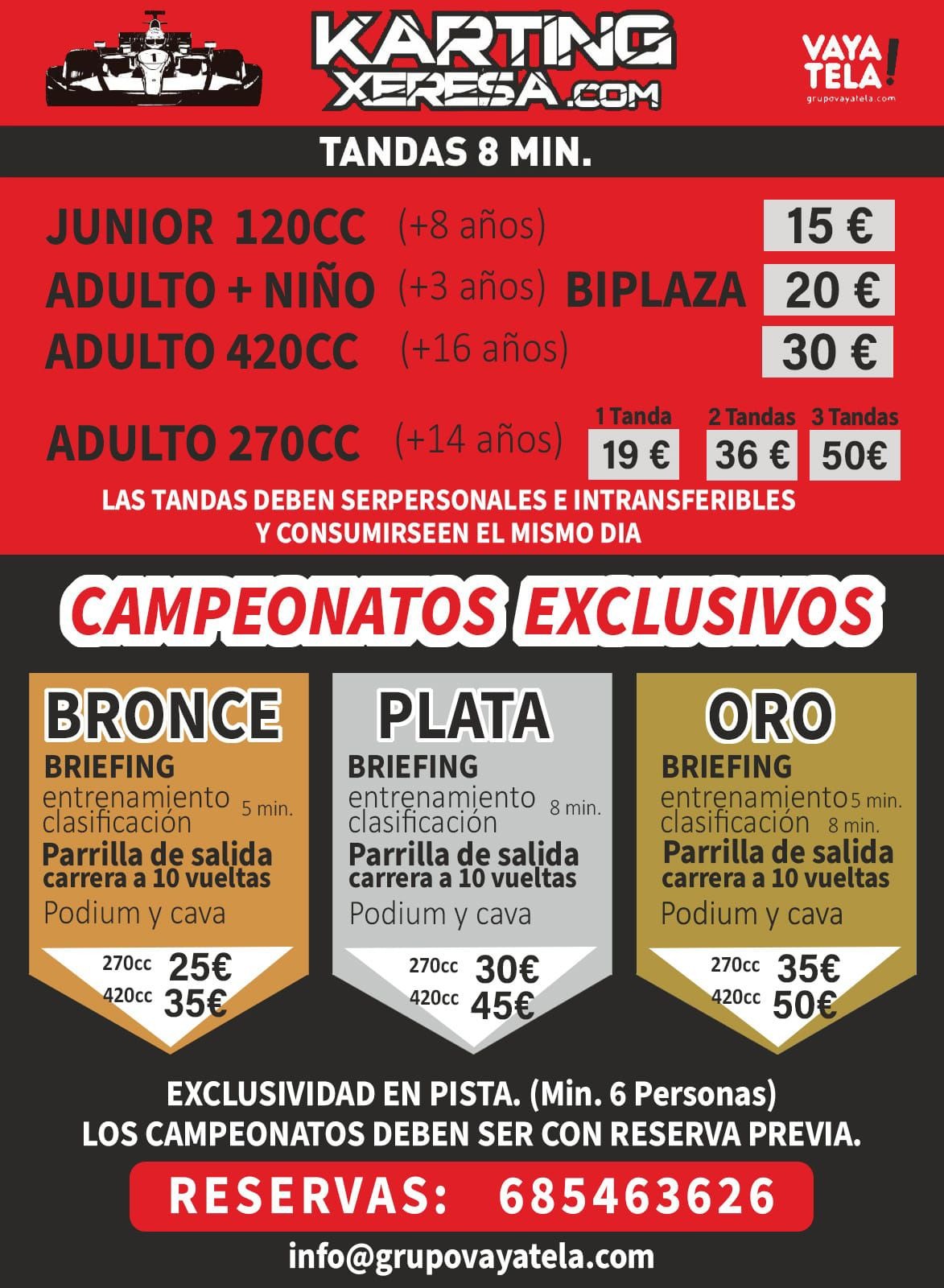 Esta actividad tiene una duración aproximada de 1 hora. El encuentro será siempre el Restaurante Vaya Tela! y desde alli os acompañaremos al circuito de karting.